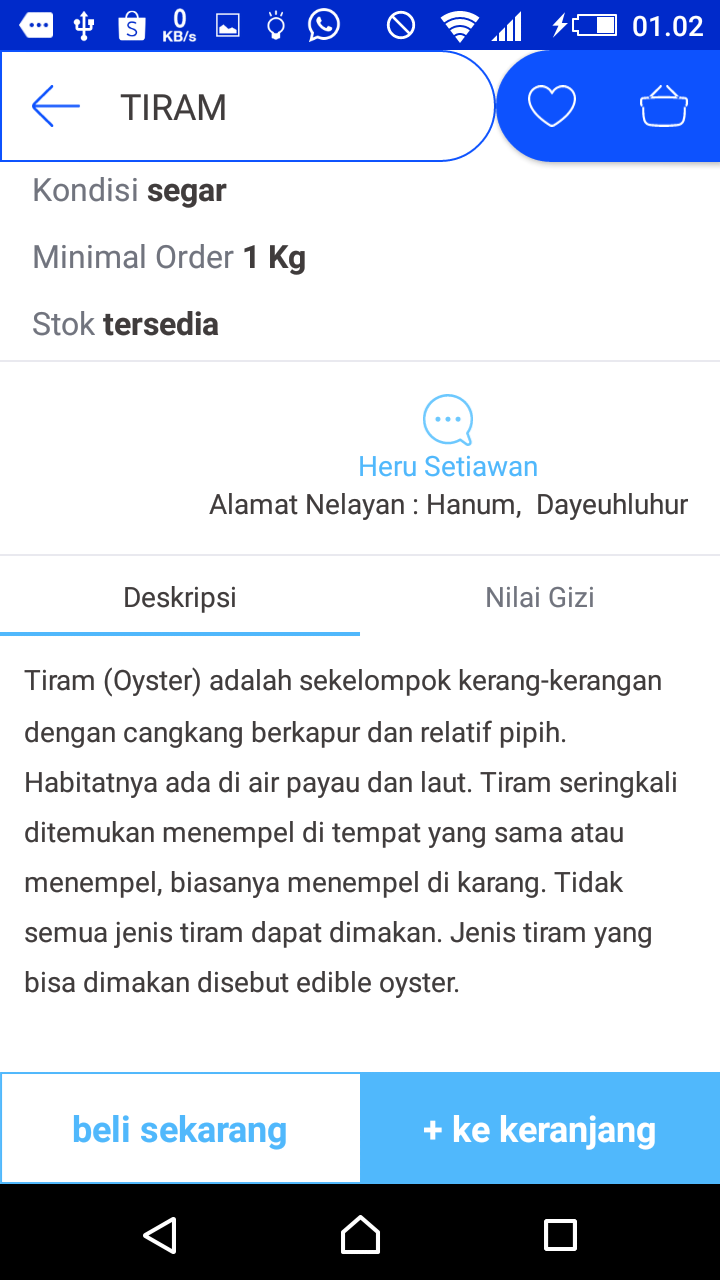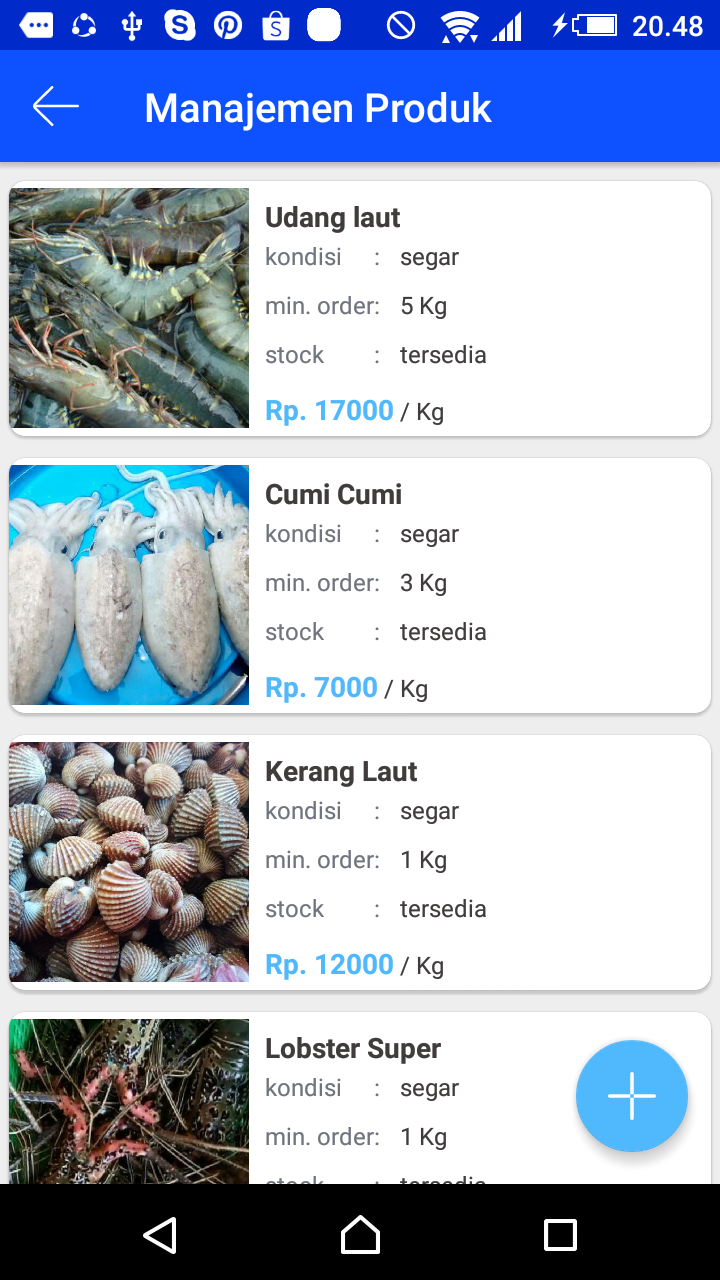 Fitur ini dapat digunakan oleh pihak penjual yang telah memiliki akun untuk memasang produk berupa hasil laut yang akan dijualnya. Penjual dapat menuliskan deskripsi singkat dan harga hasil laut tersebut.