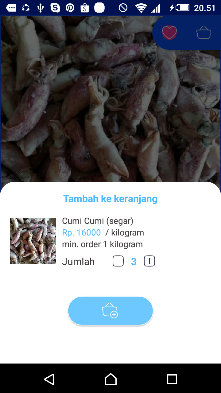 Fitur keranjang akan menampung barang belanjaan (hasil laut) yang akan dibeli oleh pihak pembeli sebelum melakukan checkout. Pembeli dapat menambahkan atau mengurangi jumlah belanjaan yang sudah disimpan di keranjang.