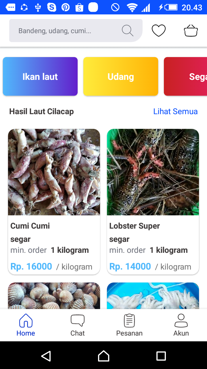 Fitur Chat digunakan sebagai sarana komunikasi langsung antara pihak pembeli dan pihak penjual. Pihak pembeli berhak menanyakan hal-hal mengenai hasil laut yang dipasang oleh penjual, dan nantinya pihak pembeli dapat membalas pertanyaan dari pihak pembeli.